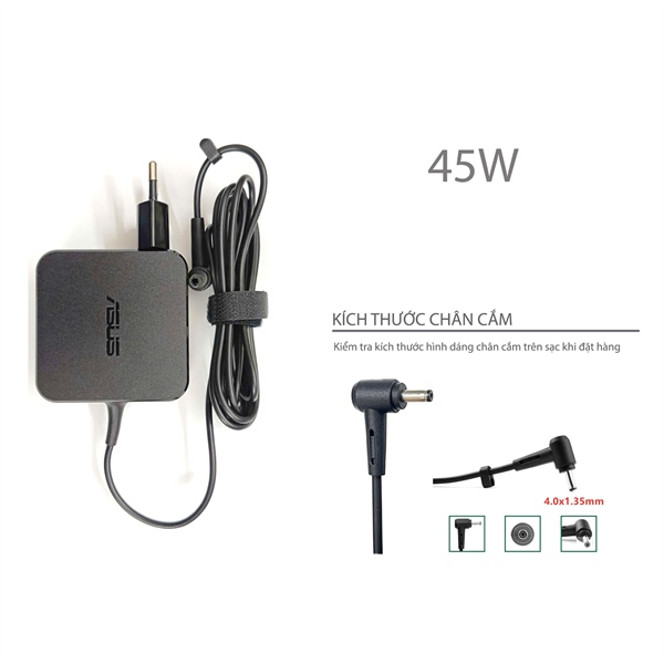 Sạc Asus 45W 19V 2.37A Chân 4.0*1.35 hình Vuông & Asus Vivobook F201E Q200E S200E X201E, Asus Zenbook UX21A UX31A, Taichi 21, Q302 Q302L Q302LA (ORG +)
