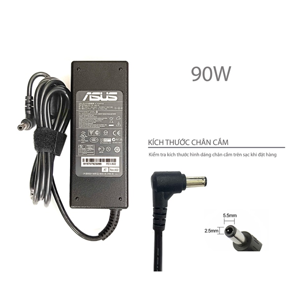 Sạc Asus 90W 19V 4.7A Chân 5.5*2.5 hình chữ nhật & X55 K55 K56 S300 S46 S400 S405 S500 S550 S551 S56 Q300 Q46 Q400 Q405 Q500 Q550 Q551 X50 X55 X58 X59 X501A X5DC X5DIJ X50IJ X5DIN X75A S46CA S56CA X71SL X71Vn (HCP +)